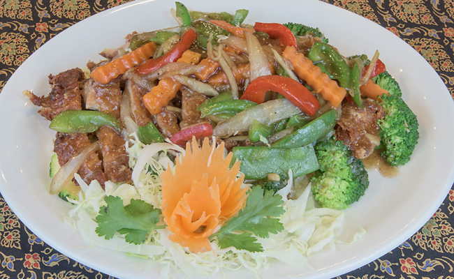Chinda Chomburi was professionally trained in her native country of Thailand, before moving to America. Stephen Dohack is a Culinary Institute of America, certified Executive Chef with 39 years of restaurant experience. It is our goal to be the only place Downtown you think of when you’re looking for a great authentic Thai experience, but we also want to offer some American options for those who enjoy American comfort foods. This makes us the place for groups with diverse taste to come without anyone compromising what they want. The food is prepared by Thai chefs and served by friendly servers who understand how to make you feel welcome and appreciated.